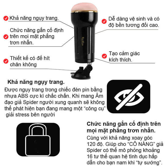 - Đặc biệt Đèn Pin Manmiao có thể hít dán trên bề mặt phẳng, cùng với khả năng xoay góc 120 độ, “cô nàng” có thể mô phỏng khoảng 16 tư thế quan hệ tình dục tạo sự hấp dẫn cho nam giới khi “tự sướng”.