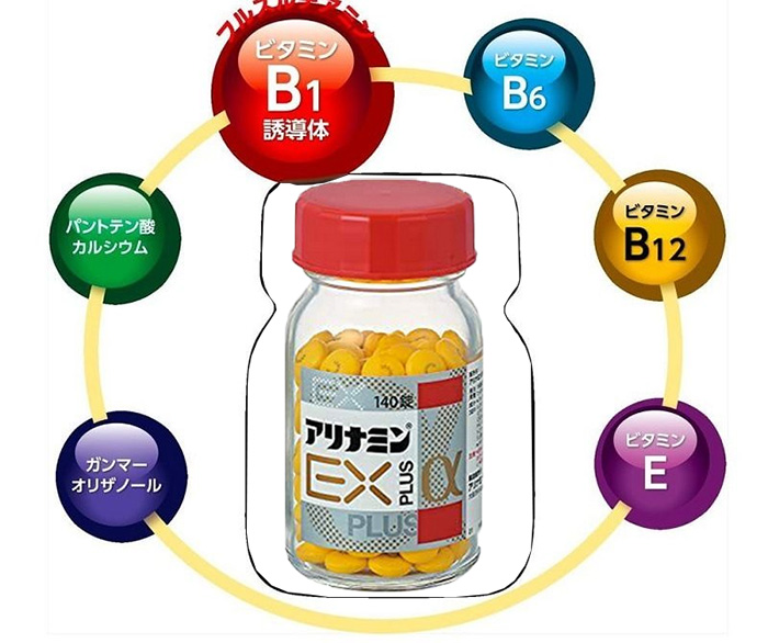 - Arinamin EX Plus Alpha có tác dụng làm phục hồi dây thần kinh ngoại vy, giảm triệu chứng đau vai gáy cổ, đau cơ bắp, đau khớp vai, thoái hoá đốt sống cổ, đau lưng thấp, cứng và đau vai, tê bàn tay và bàn chân, đau thần kinh, asthenopia.