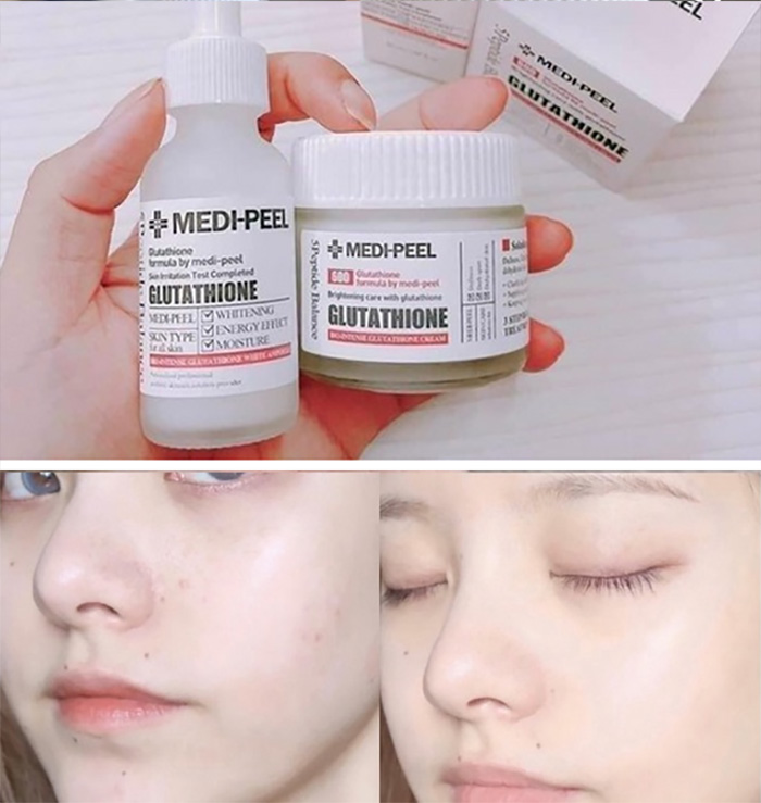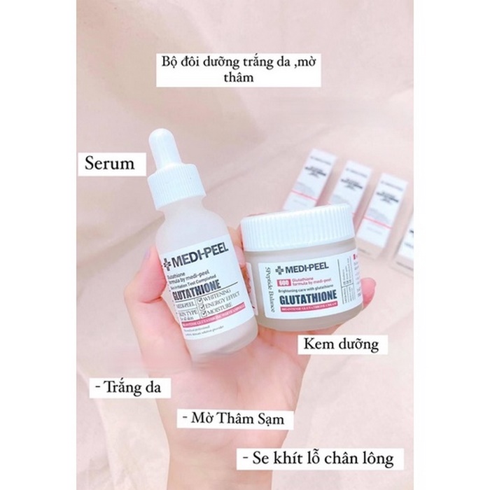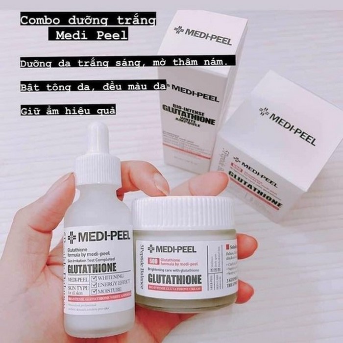 - Bộ đôi Dưỡng Trắng Phục Hồi Da Medi-Peel Glutathione Hàn Quốc giúp cải thiện làn da, phục hồi làn da bị sần sùi, khô ráp, mất nước, dưỡng ẩm tối đa và duy trì sự mềm mại cho da.