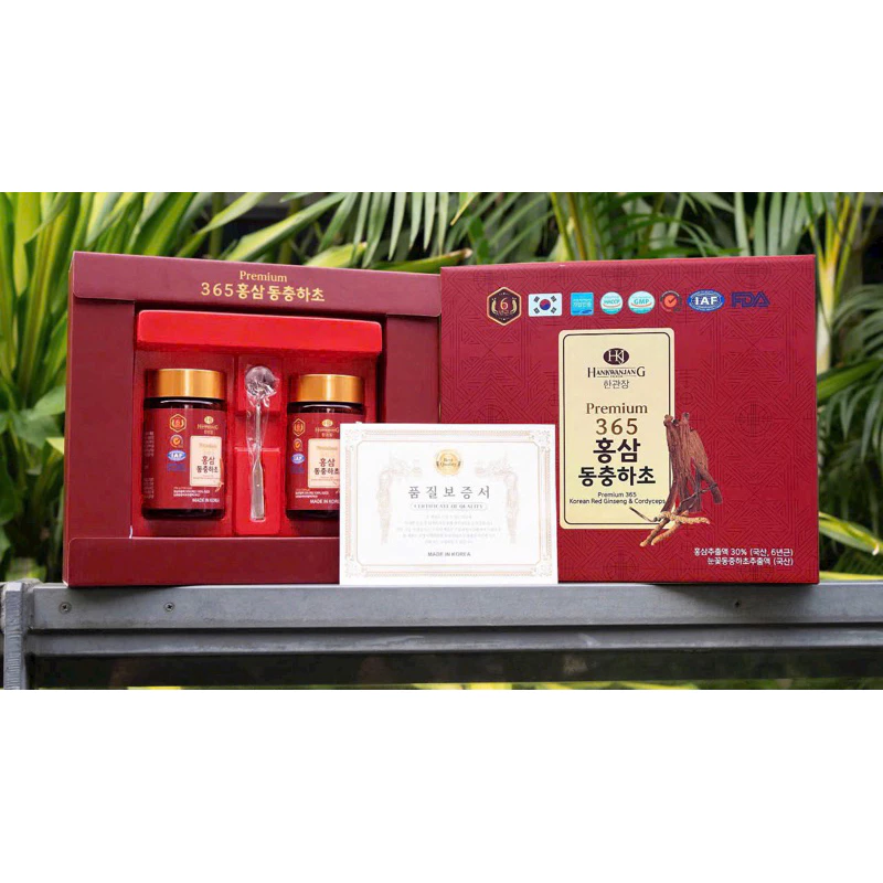 Giá bán: 690000690000690.000₫Cao Hồng Sâm Đông Trùng Hạ Thảo Hankwanjang Premium 365 là sự kết hợp tinh túy giữa hồng sâm Hàn Quốc 6 năm tuổi và đông trùng hạ thảo chất lượng cao. Sản phẩm được sản xuất theo quy trình hiện đại, giữ trọn dưỡng chất quý, mang đến nguồn năng lượng và sức khỏe bền vững, đồng thời là món quà biếu sang trọng, ý nghĩa.