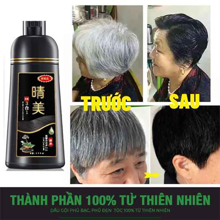 - Phủ bạc nhanh chóng, giúp phủ màu mái tóc đen (nâu) chỉ sau lần gội đầu đen.