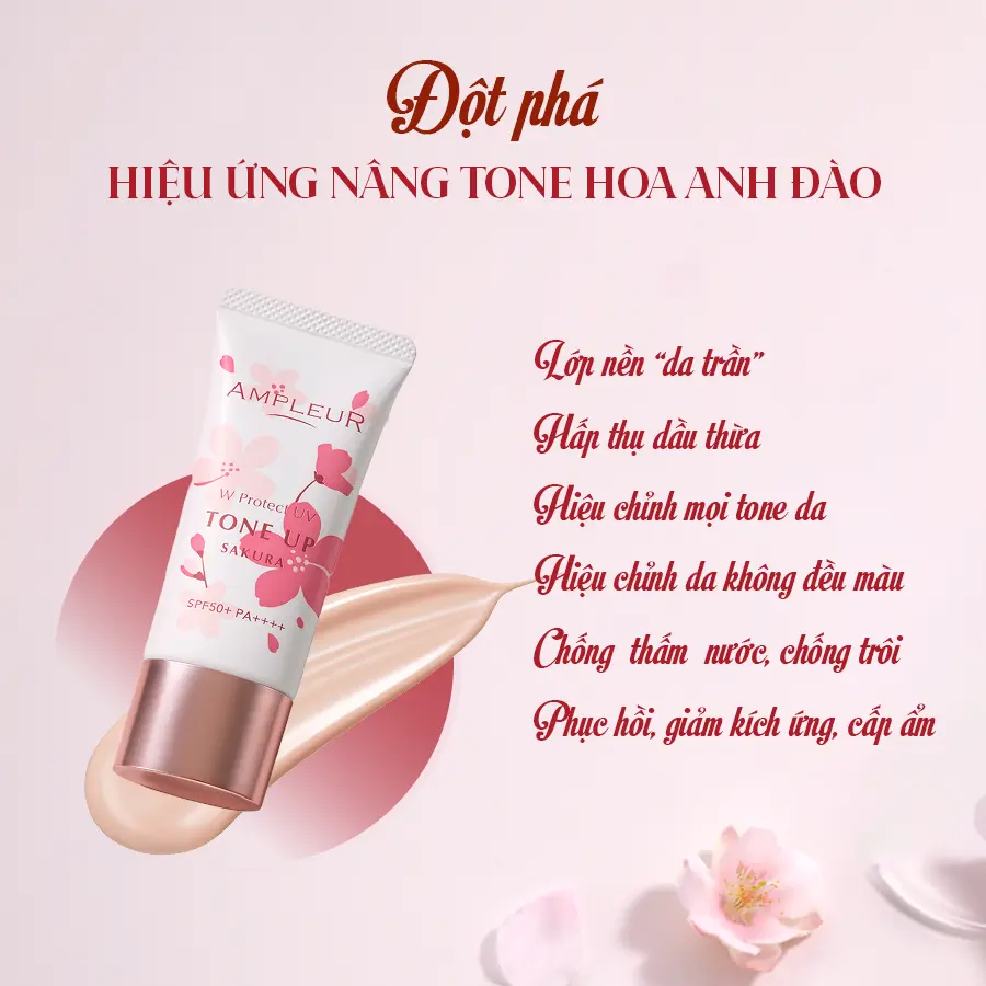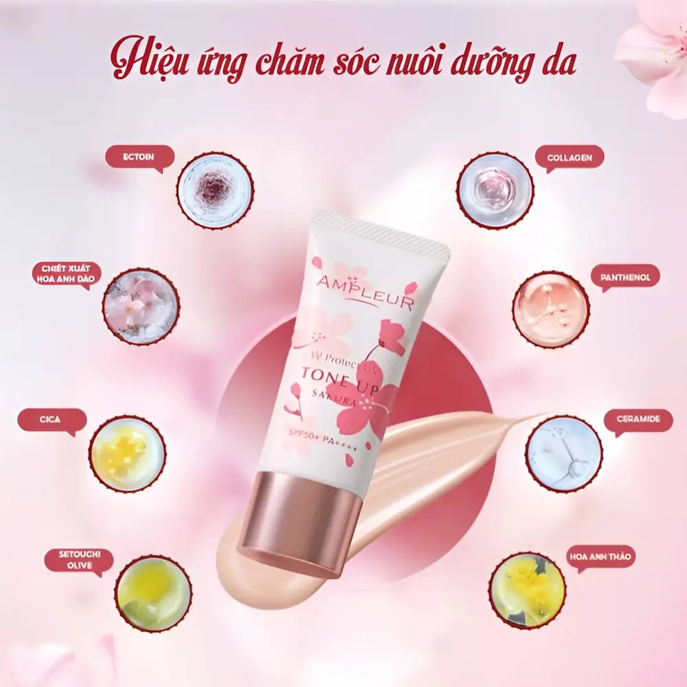Giá bán: 999000999000999.000₫Kem chống nắng Ampleur W Protect UV ToneUp Sakura 30g là sản phẩm chống nắng cao cấp từ Nhật Bản, kết hợp khả năng bảo vệ da SPF50 PA++++ với hiệu ứng nâng tông hồng hào tự nhiên nhờ chiết xuất hoa anh đào. Kết cấu mỏng nhẹ, dễ tán, mang lại cảm giác thoải mái khi dùng hàng ngày.