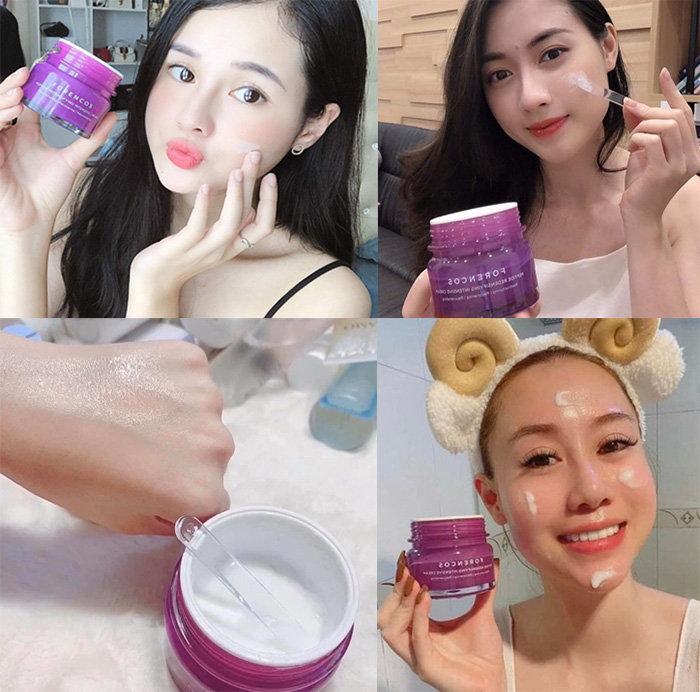 - Kem dưỡng da ban đêm Forencos Peptide màu tím chiết xuất từ các thành phần thiên nhiên an toàn. Ngoài ra, kem dưỡng ẩm và trắng da từng ngày, duy trì sức đề kháng da, chống oxy hóa, bảo vệ da trước tác động của môi trường.