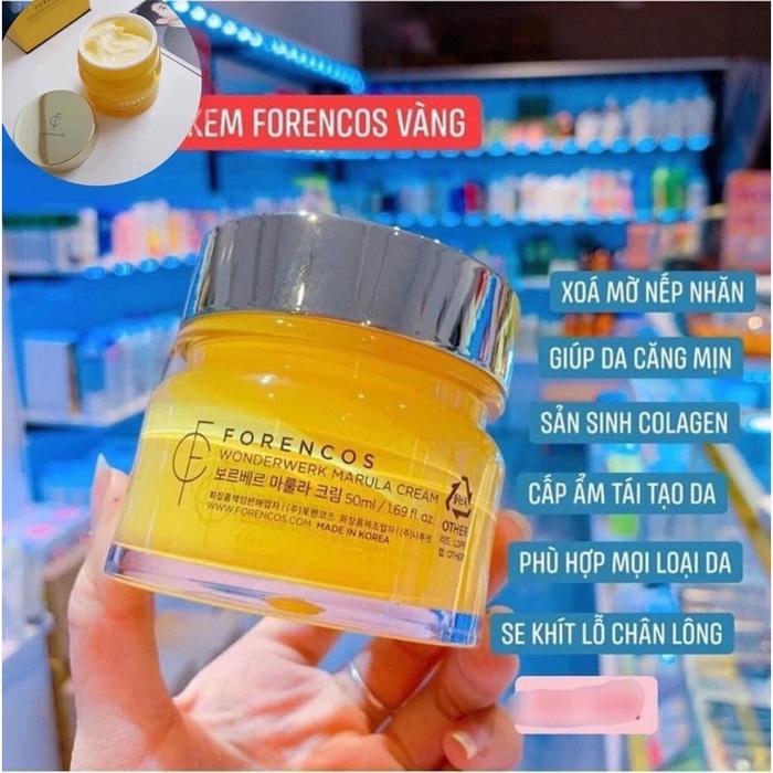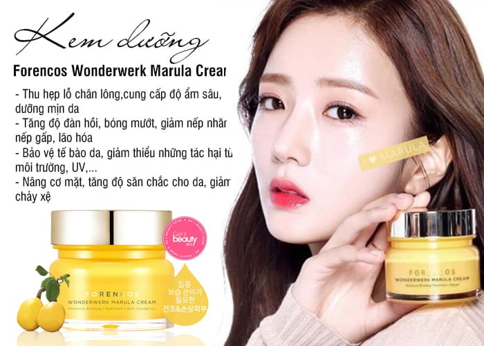 - Kem dưỡng Forencos vàng Wonderwerk Marula cung cấp độ ẩm chuyên sâu, nuôi dưỡng làn da căng bóng mướt.