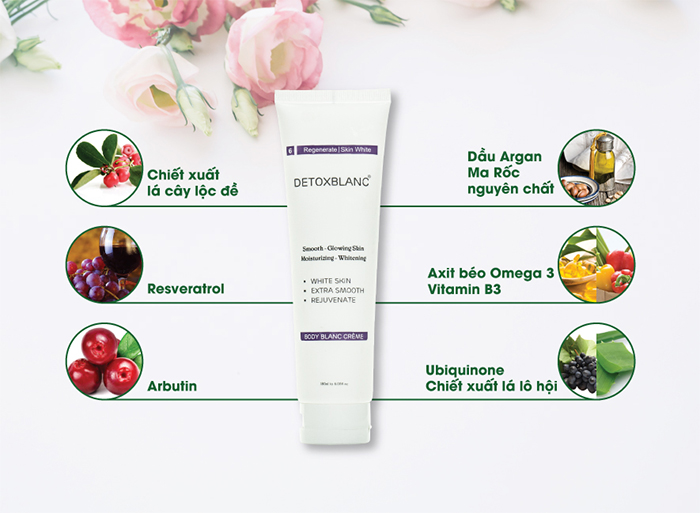 Công nghệ thải độc Detox của Detoxblanc sở hữu một khả năng đáng kinh ngạc. Đào thải độc tố – nguyên nhân khiến da ngày càng hư hại từ 45 triệu xe máy, 240 nghìn xe ô tô và mật độ dày đặc lên tới 60% những hạt bụi mang tính axit, có kích thước siêu vi mà khẩu trang không thể che chắn cùng với hàng loạt hóa chất độc hại tiếp xúc với da hàng ngày.