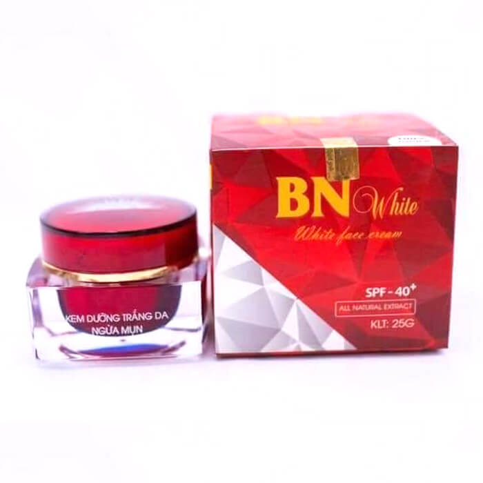 - Kem dưỡng trắng da ngừa mụn BN White cải thiện sẹo thâm, sẹo mụn và tình trạng yếu ớt của làn da.