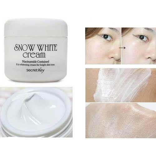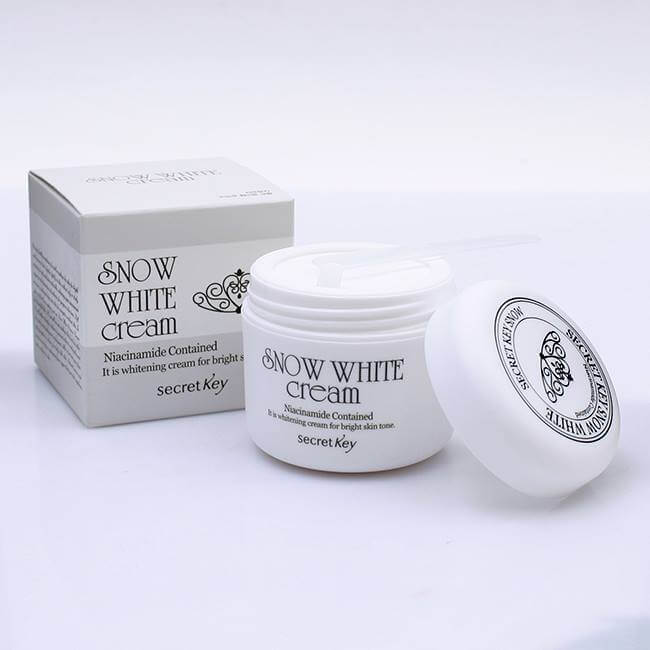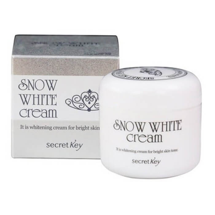 - Kem dưỡng trắng da Snow White Cream có xuất xứ từ thương hiệu mỹ phẩm Secret Key - Hàn Quốc với dung tích 50gr là dòng kem được sử dụng công nghệ Naiacinamide (hay còn gọi là vitamin B3) dưỡng trắng da và chống lão hóa. Ngoài ra kem còn có công dụng khác như BB cream và kem lót trang điểm makeup base rất đa năng.