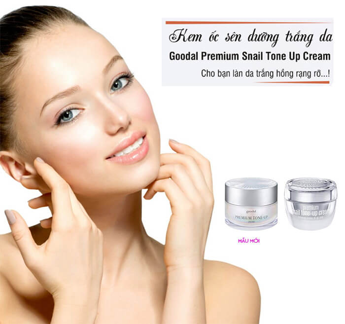 - Kem ốc sên Goodal Premium Snail Tone Up Cream dưỡng trắng da Hàn Quốc được chiết xuất từ ốc sên và tinh chất nhân sâm trắng có tác dụng dưỡng trắng, sáng da, cải thiện tone màu da, cho bạn làn da trắng hồng rạng rỡ.