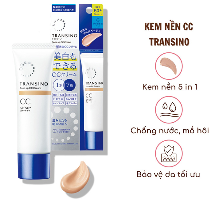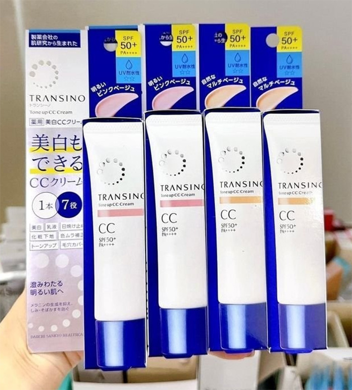 - Kem trang điểm dưỡng trắng Transino Whitening CC Cream là sản phẩm cao cấp của hãng mỹ phẩm uy tín hàng đầu Nhật Bản nên yên tâm khi sử dụng.
