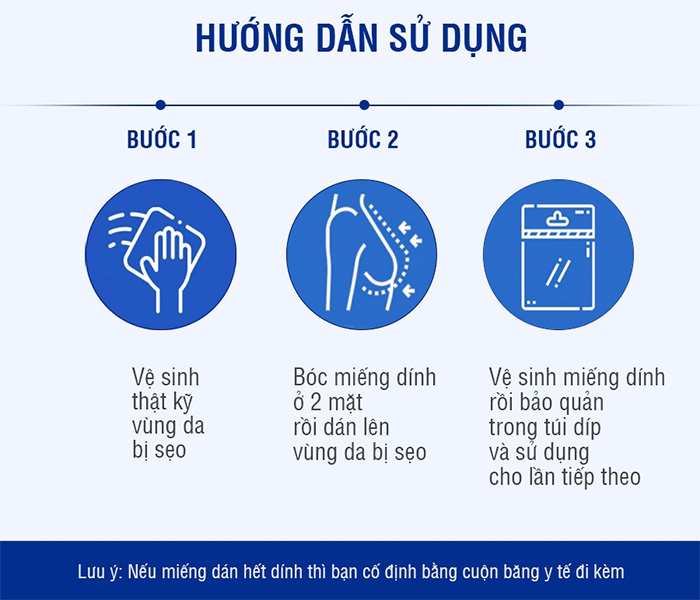 Lưu ý phải miếng dán phải bao phủ hết vùng da cách vết sẹo khoảng 0.5mm.