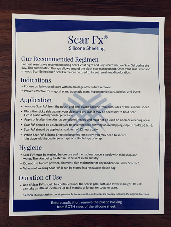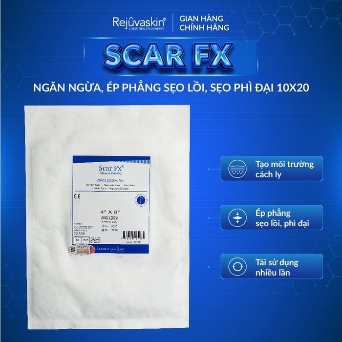 - Miếng dán hỗ trợ giảm sẹo lồi Silicon Scar FX Rejuvaskin của Mỹ tạo lớp màng bảo vệ cách ly môi trường điều trị, ngăn ngừa vi khuẩn, bụi bẩn tấn công gây sẹo.