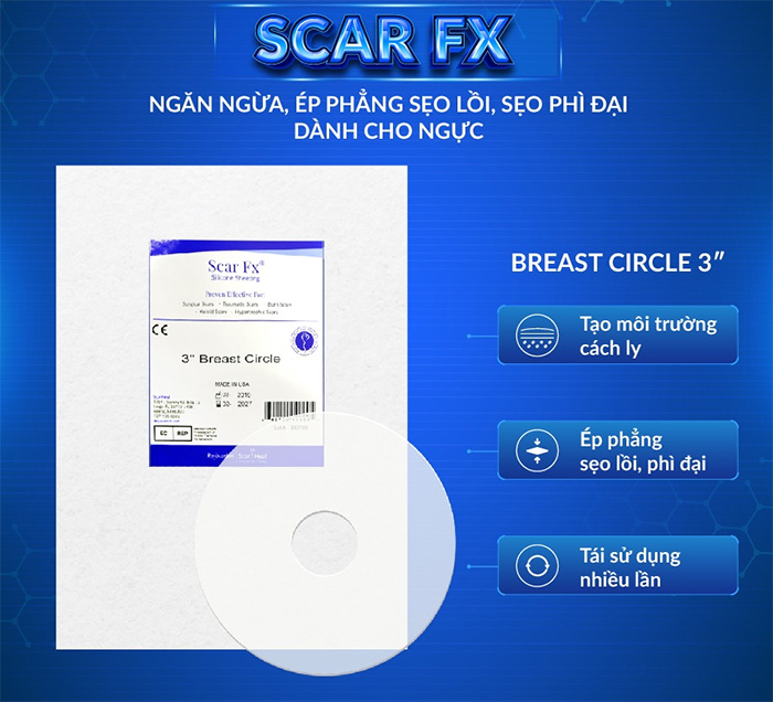 Đặc biệt, miếng dán Scar FX 3″ Breast Circle là thứ mà những người sẽ và đã phẫu thuật ngực phải có sẵn sàng tại nhà để NGĂN NGỪA SẸO LỒI, SẸO PHÌ ĐẠI hình thành.
