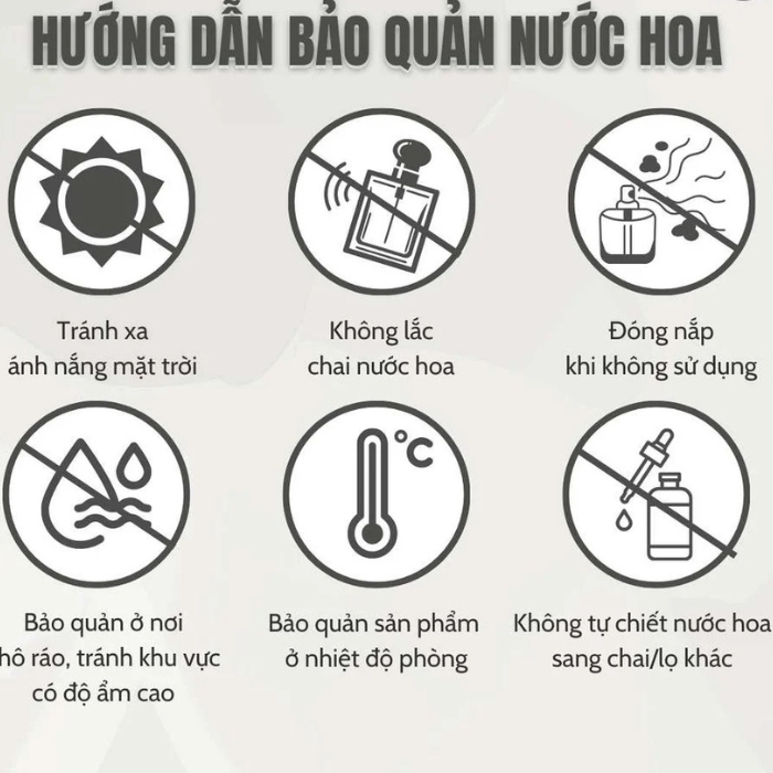 Bảo quản sản phẩm nơi khô ráo, thoáng mát, tránh ánh nắng trực tiếp và nhiệt độ cao. Đậy nắp chai kín sau mỗi lần sử dụng để bảo vệ mùi hương lâu dài.