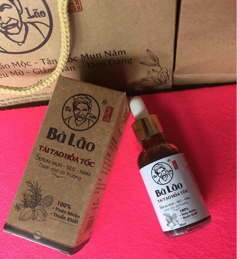 • Serum Trị Mụn Bà Lão Tái Tạo Hỏa Tốc – Dành Cho Da Thường của Công ty TNHH Bà Lão là sản phẩm trị mụn được nghiên cứu trên bài thuốc bí truyền của người Dao Đỏ, chiết xuất hoàn toàn từ thảo dược với Nhân sâm, nấm Linh Chi, tinh dầu Đàn Hương cùng 12 loại thảo dược quý. Giúp trị sạch mụn từ sâu bên trong, trị được mọi loại mụn cứng đầu và lâu năm như: Mụn ẩn, mụn viêm, đầu đen, đầu đỏ,... và hỗ trợ trị sẹo, nám, thâm hiệu quả.