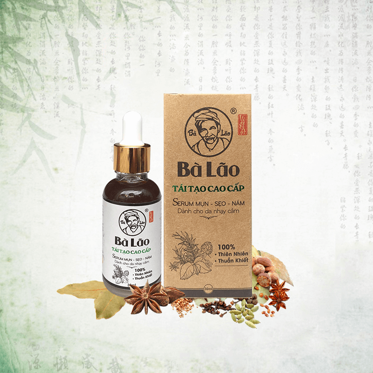 Serum trị mụn Bà Lão là sản phẩm trị mụn vượt trội được nghiên cứu trên bài thuốc bí truyền của người Dao Đỏ bào chế hoàn toàn từ các thảo dược quý: nấm linh chi, nhân sâm, tinh dầu đàn hương,Sản phẩm giúp trị mọi loại mụn bọc, đầu đen, mụn mủ,... và hỗ trợ trị sẹo, nám, thâm mụn, giúp Tái Tạo Da hiệu quả theo 4 bước sau: