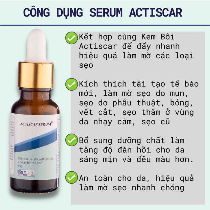 - Serum xóa mờ sẹo Actiscar với chiết xuất từ thiên nhiên.