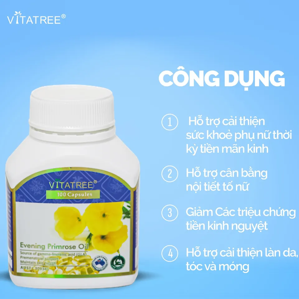 Giá bán: 850000850000850.000₫Tinh dầu hoa anh thảo Vitatree được chiết xuất từ hạt hoa anh thảo thiên nhiên, chứa hàm lượng cao Omega-6 và Gamma Linolenic Acid (GLA). Đây là sản phẩm hỗ trợ cân bằng nội tiết, cải thiện sức khỏe và làn da từ bên trong. Với chất lượng đạt chuẩn Úc, sản phẩm được nhiều phụ nữ tin dùng để duy trì sự khỏe đẹp và tự tin mỗi ngày.