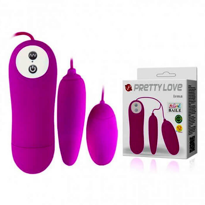 - Trứng rung tình yêu Pretty Love Irma Baile trứng rung gồm 1 trứng tròn và một trứng dài có tác dụng massage và kích thích mọi góc gách bên trong của âm đạo, chạm đến và kích thích điểm G.