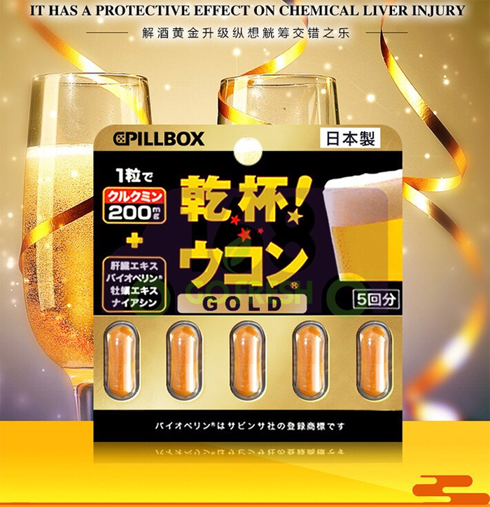 - Viên nghệ giải rượu Pillbox Kanpal Ukon với thành phần chiết xuất từ thiên nhiên: nghệ vàng, tiêu đen, hàu biển, Stearic acid,… được điều chế với công thức độc đáo, Pillbox Kanpai Ukon là viên uống có tác dụng phân hủy và thải trừ các chất độc hại có trong các thức uống chứa cồn ra ngoài cơ thể, bảo vệ gan, thận và niêm mạc dạ dày, giảm cảm giác mệt mỏi và say xỉn, hạn chế các hành vi mất kiểm soát hoặc quá khích sau khi dùng rượu, bia,...