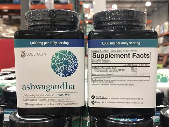 - Viên uống nhân sâm Ấn Độ Youtheory Ashwagandha 1000mg cung cấp 1,000 mg Ashwagandha mỗi khẩu phần.
