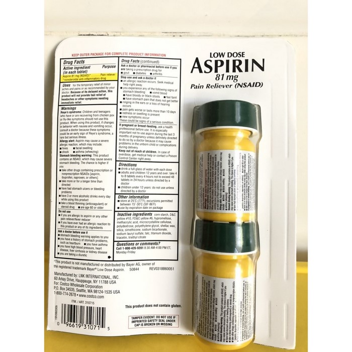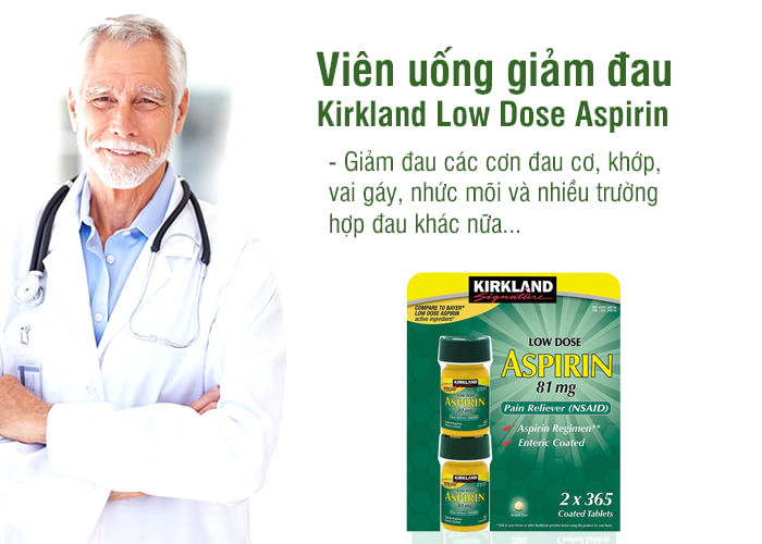 - Viên uống Kirkland Low Dose Aspirin của Mỹ là sản phẩm hỗ trợ điều trị làm giảm đau các chứng đau nhức, nhanh chóng lấy lại tinh thần làm việc.