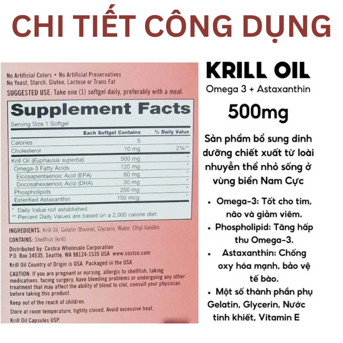 Giá bán: 890000890000890.000₫Sản phẩm Viên Uống Dầu Tôm Kirkland Signature Krill Oil 500mg là một thực phẩm chức năng cao cấp được chiết xuất từ dầu tôm tinh khiết. Với công nghệ sản xuất đạt tiêu chuẩn GMP và được kiểm định chất lượng nghiêm ngặt, sản phẩm mang đến nguồn Omega-3 tự nhiên cùng các chất chống oxy hóa mạnh mẽ như Astaxanthin, giúp hỗ trợ sức khỏe tim mạch và cải thiện chức năng toàn thân. Đây là lựa chọn lý tưởng cho những ai quan tâm đến sức khỏe và mong muốn bổ sung dưỡng chất từ thiên nhiên.
