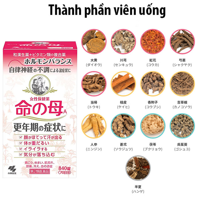 Viên Uống Tiền Mãn Kinh Kobayashi Nhật Bản là sản phẩm nổi tiếng tại Nhật, được nhiều phụ nữ tin dùng để hỗ trợ cân bằng nội tiết tố và giảm các triệu chứng khó chịu trong giai đoạn tiền mãn kinh. Sản phẩm được chiết xuất từ 13 loại thảo dược tự nhiên kết hợp với các vitamin và khoáng chất thiết yếu, mang lại hiệu quả toàn diện và an toàn cho người sử dụng.