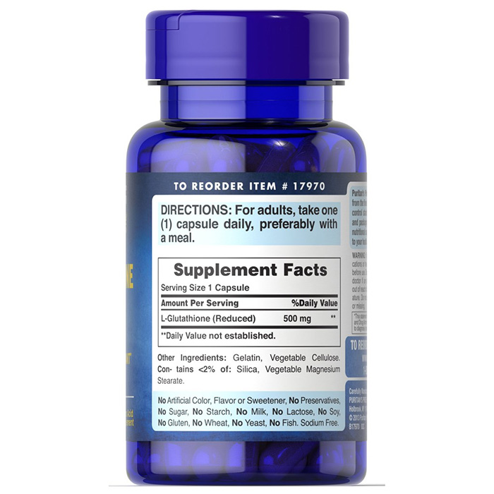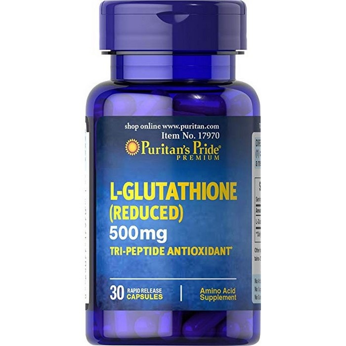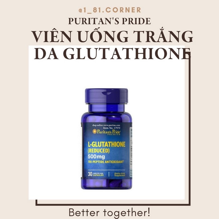 - Viên uống L-Glutathione Reduced 500mg Puritan's Pride giúp chống gốc tự do, chống oxy hóa.