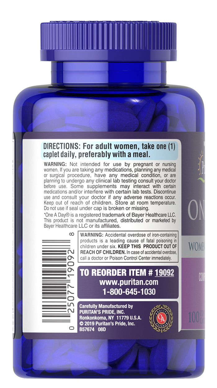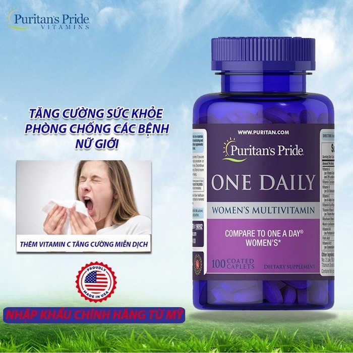 - Shop Cửa Hàng Chính Hãng cung cấp Vitamin tổng hợp nữ One Daily Women's Multivitamin Puritan's Pride 100 viên CHÍNH HÃNG 100%, giá cạnh tranh. Chúng tôi cam kết cung cấp cho bạn hàng chính hãng, luôn đạt tiêu chuẩn kiểm nghiệm chất lượng để đảm bảo sức khỏe cho người tiêu dùng cũng như uy tín của chúng tôi.